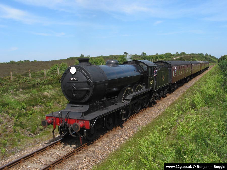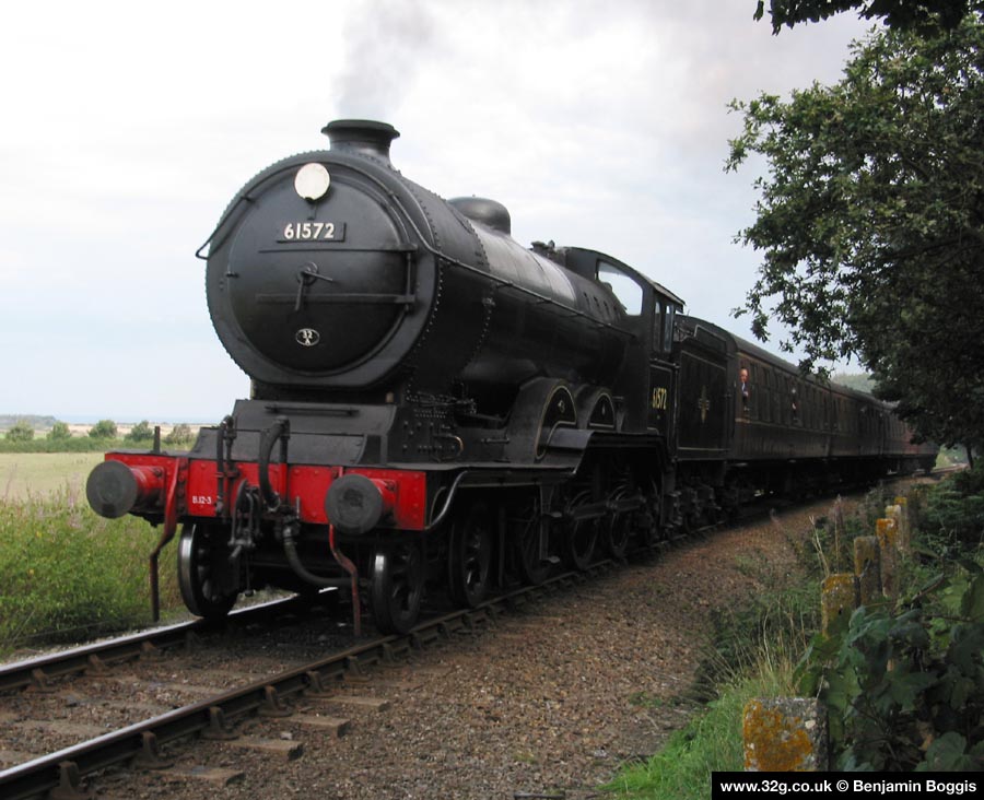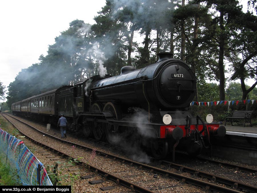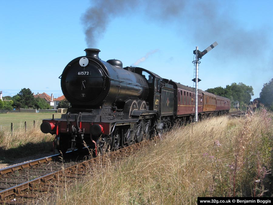 | One of the highlights of 2002 was the Jubilee Celebrations in June. This saw, for the first time in preservation B12 61572 and B1 61264 running together in BR livery's. Unfortunately due to pressing engagements 61264 was only at the railway for one week, hopefully it will be back soon! J15 65462 was also due to run at this event, making 3 ex-LNER classes, but because of delays in the final stages of restoration it missed this event. Also featured in this event was another once locally shedded locomotive Class 31 5580, which like 61572 was formerly shedded at 32A (Norwich Thorpe). | |||