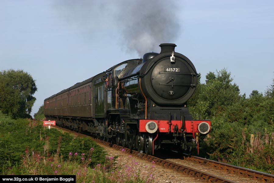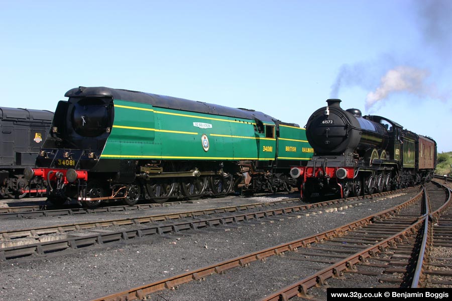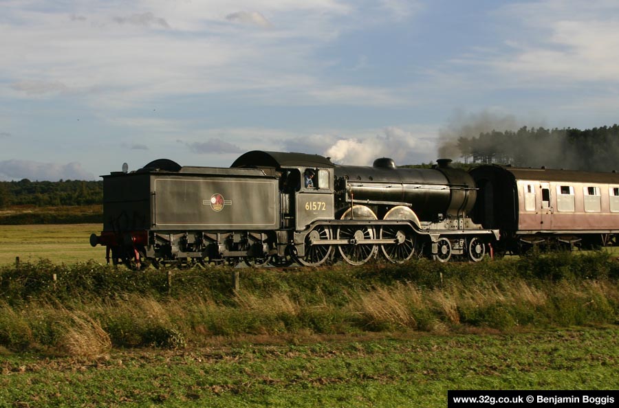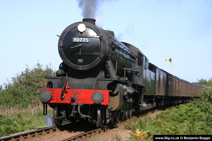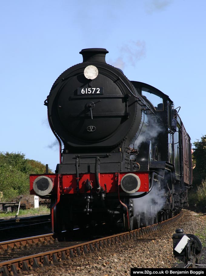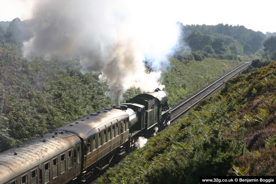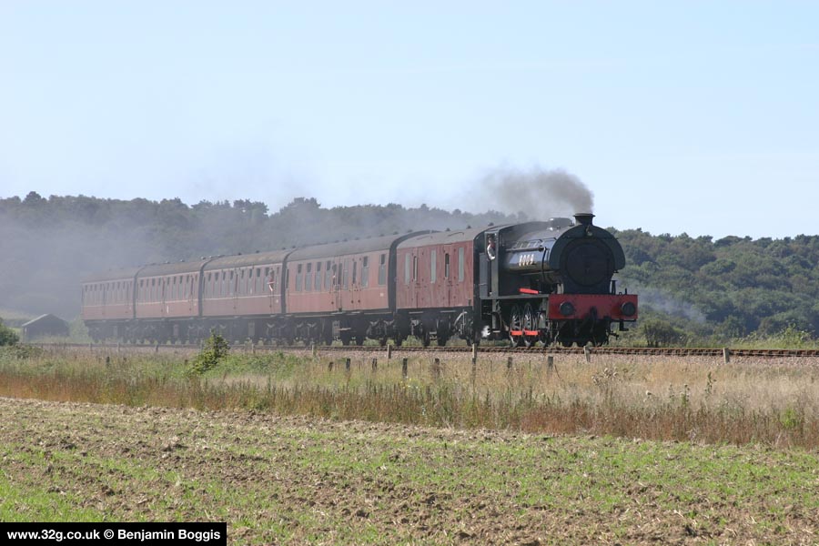 | Think I'll start by mentioning the weather, it was superb! I can't remember a NNR Gala when it has been sunny for all three days, and I have been attending them for nearly 10 years! The only thing that disappointed, was the "no show" of 34081 92 Squadron. The loco was originally booked to arrive in June, but due to the extent of the work needed only arrived 8 days before the gala. The loco steamed for the first time in 10 months on 31st August, but unfortunately blew a "mud hole door seal", which put pay to any appearance at the Gala. (It is now hoped to have the loco ready for the 40s Weekend on 18–19th September). Deputising for 34081 was 8009, which on friday bore a makeshift "92 Squadron" headboard! As usual an intensive service was run on all three days, and featured the following motive power; LNER B12 61572, J15 65462, J94 8009, and War Department Austerity 2-10-0 90775. | |||