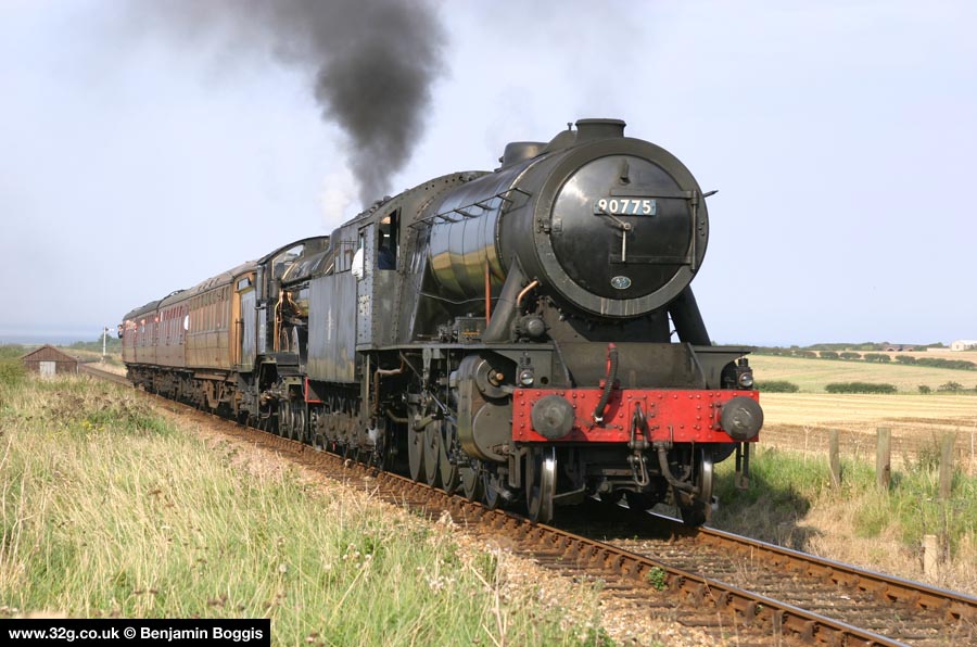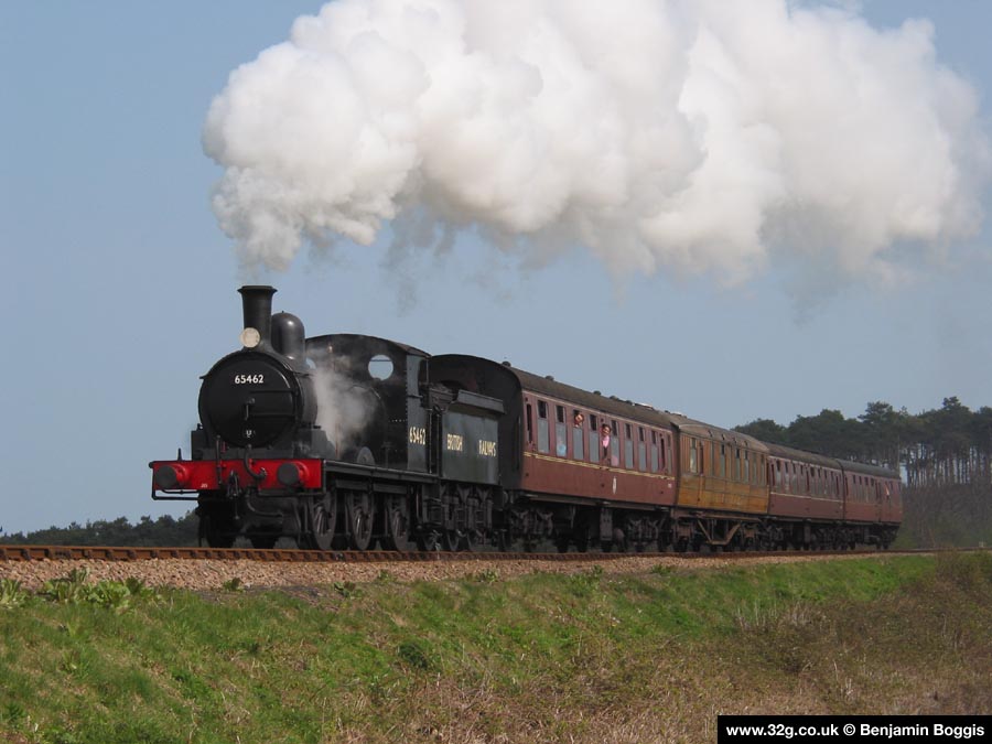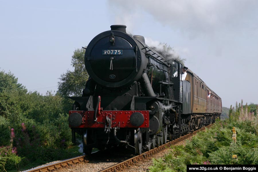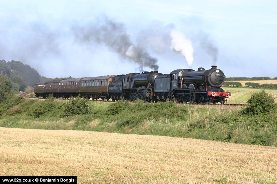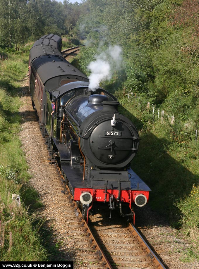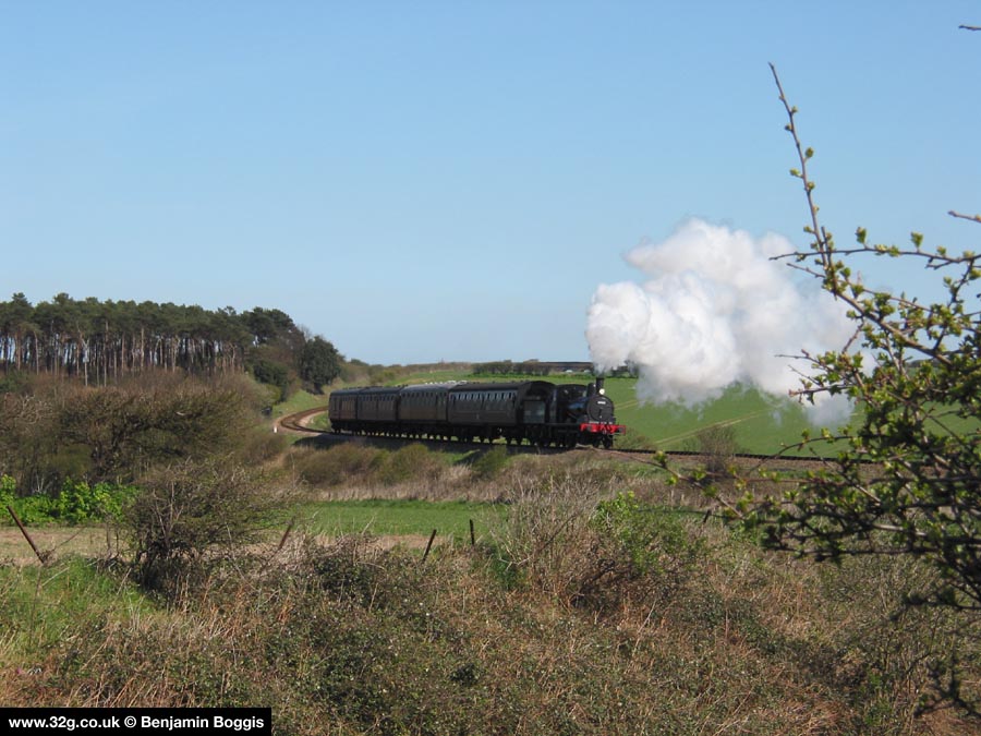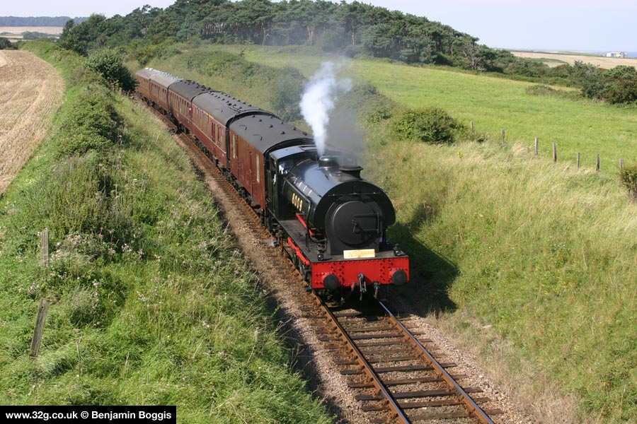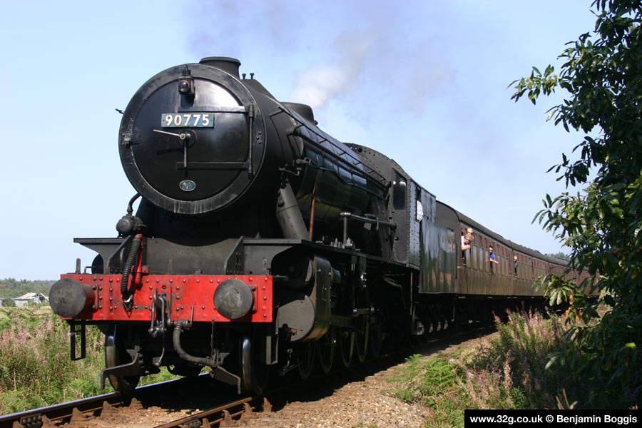 | Think I'll start by mentioning the weather, it was superb! I can't remember a NNR Gala when it has been sunny for all three days, and I have been attending them for nearly 10 years! The only thing that disappointed, was the "no show" of 34081 92 Squadron. The loco was originally booked to arrive in June, but due to the extent of the work needed only arrived 8 days before the gala. The loco steamed for the first time in 10 months on 31st August, but unfortunately blew a "mud hole door seal", which put pay to any appearance at the Gala. (It is now hoped to have the loco ready for the 40s Weekend on 18–19th September). Deputising for 34081 was 8009, which on friday bore a makeshift "92 Squadron" headboard! As usual an intensive service was run on all three days, and featured the following motive power; LNER B12 61572, J15 65462, J94 8009, and War Department Austerity 2-10-0 90775. | |||