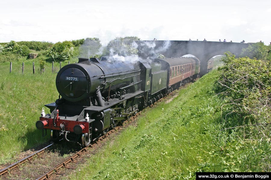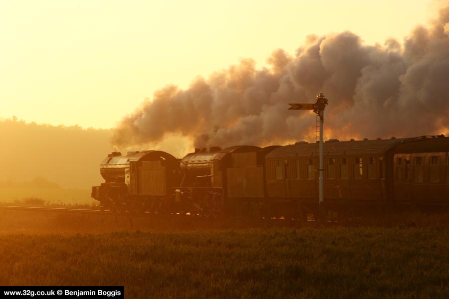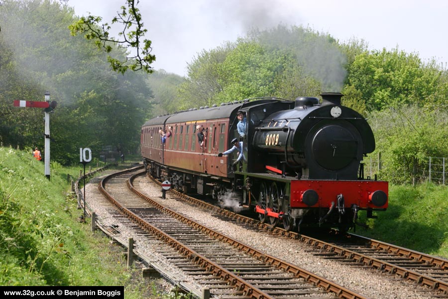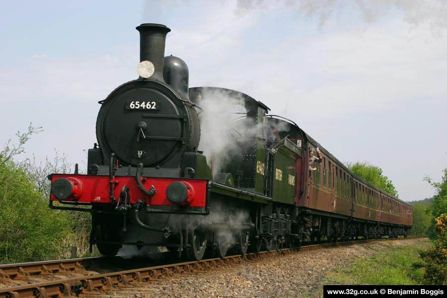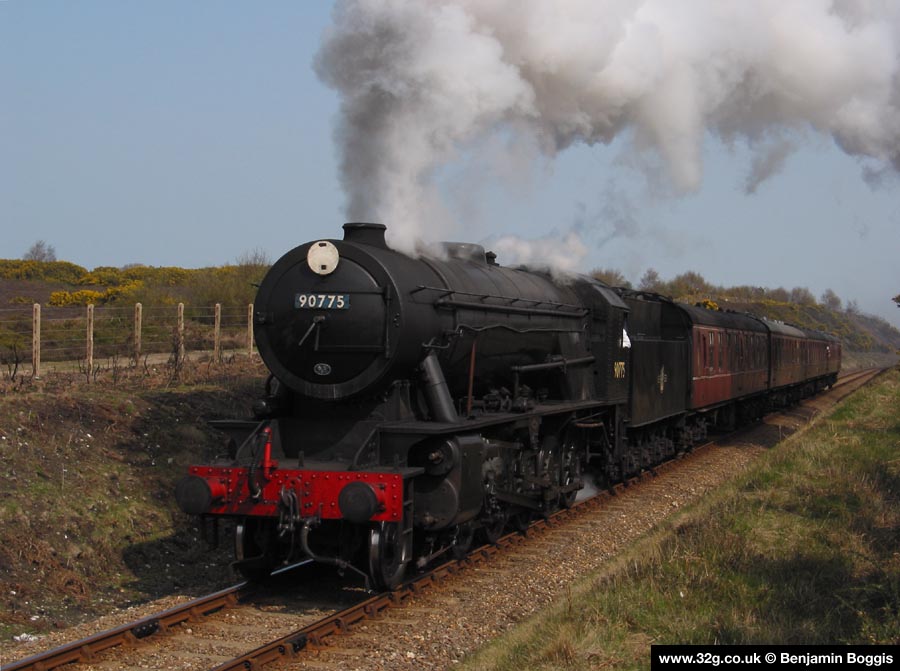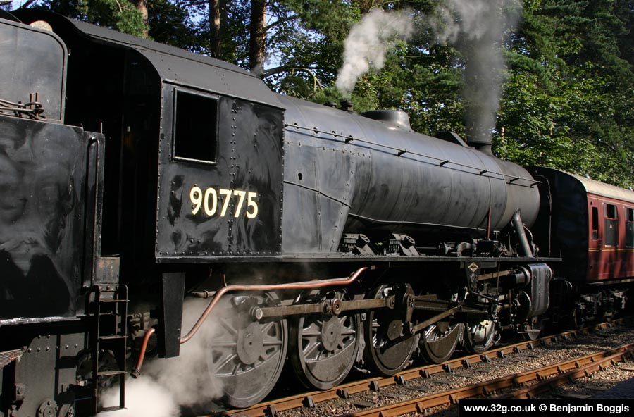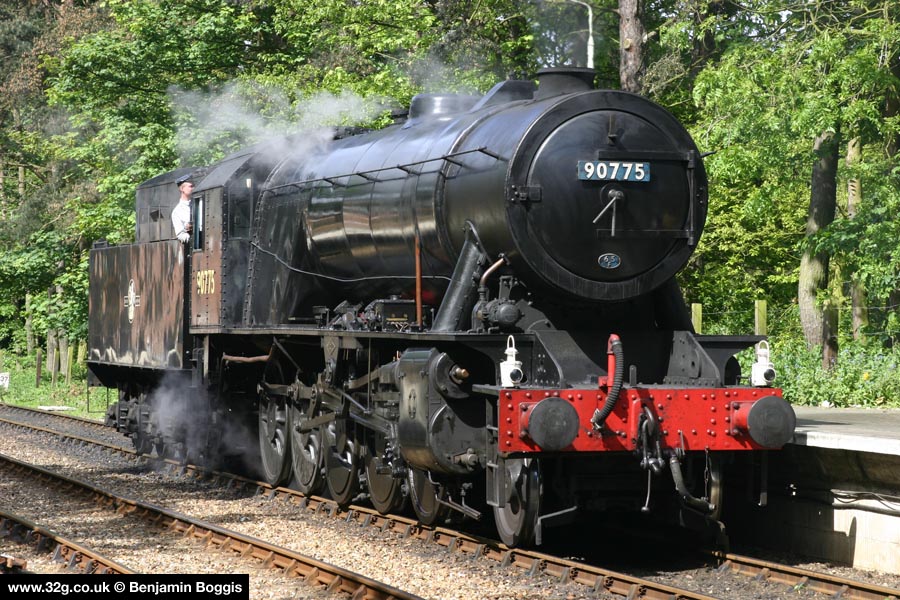 | Think I'll start by mentioning the weather, it was superb! I can't remember a NNR Gala when it has been sunny for all three days, and I have been attending them for nearly 10 years! The only thing that disappointed, was the "no show" of 34081 92 Squadron. The loco was originally booked to arrive in June, but due to the extent of the work needed only arrived 8 days before the gala. The loco steamed for the first time in 10 months on 31st August, but unfortunately blew a "mud hole door seal", which put pay to any appearance at the Gala. (It is now hoped to have the loco ready for the 40s Weekend on 18–19th September). Deputising for 34081 was 8009, which on friday bore a makeshift "92 Squadron" headboard! As usual an intensive service was run on all three days, and featured the following motive power; LNER B12 61572, J15 65462, J94 8009, and War Department Austerity 2-10-0 90775. | |||