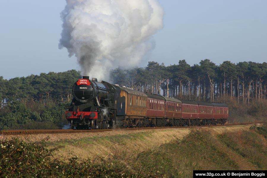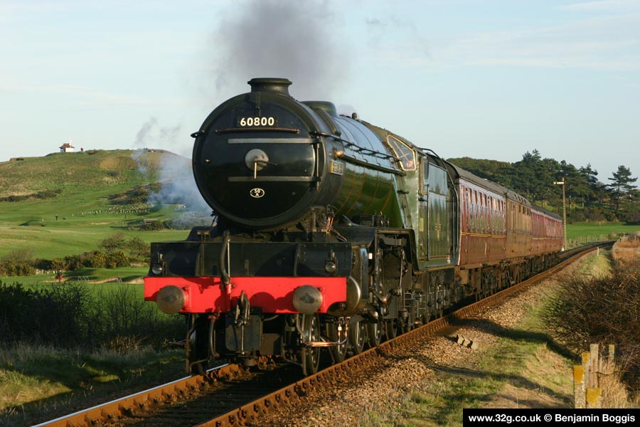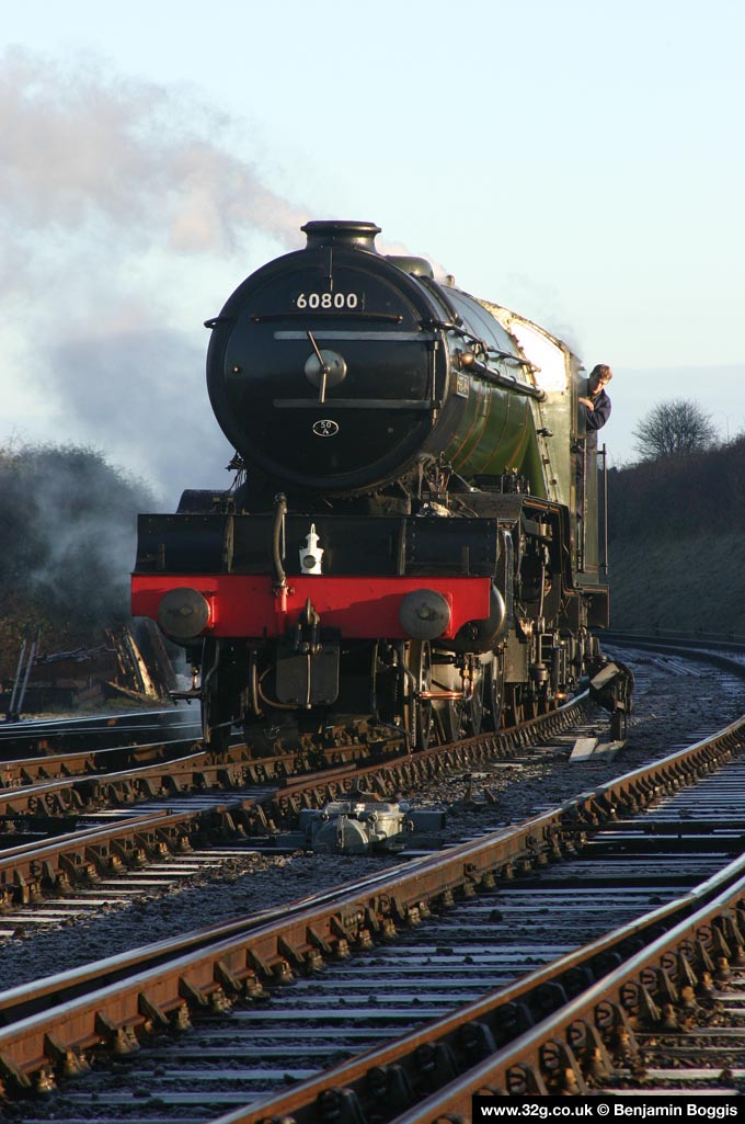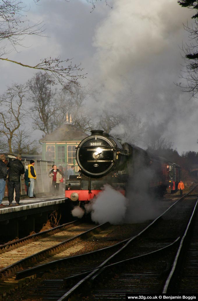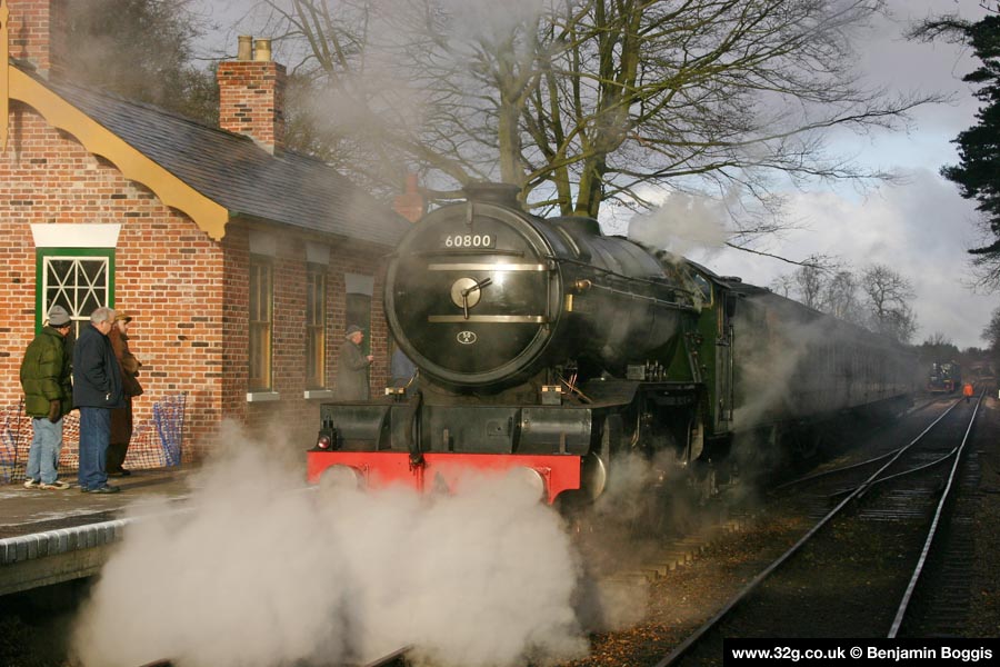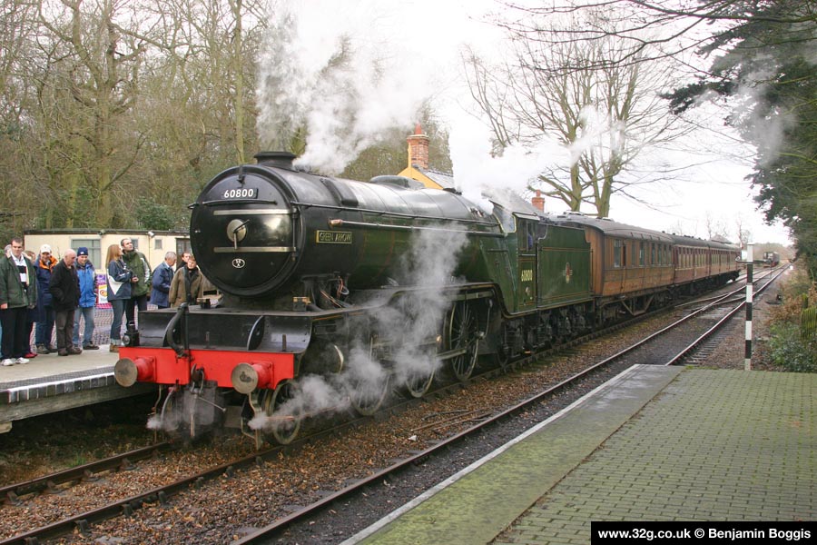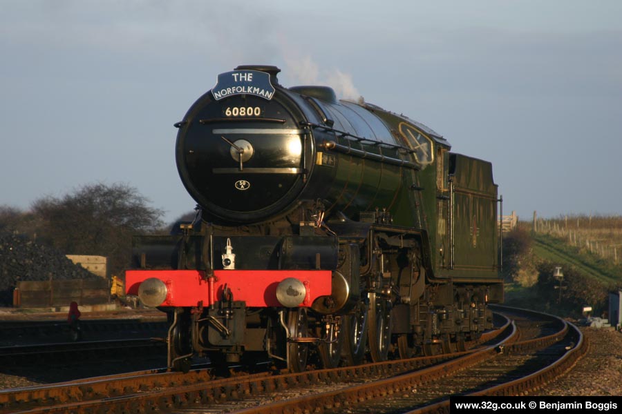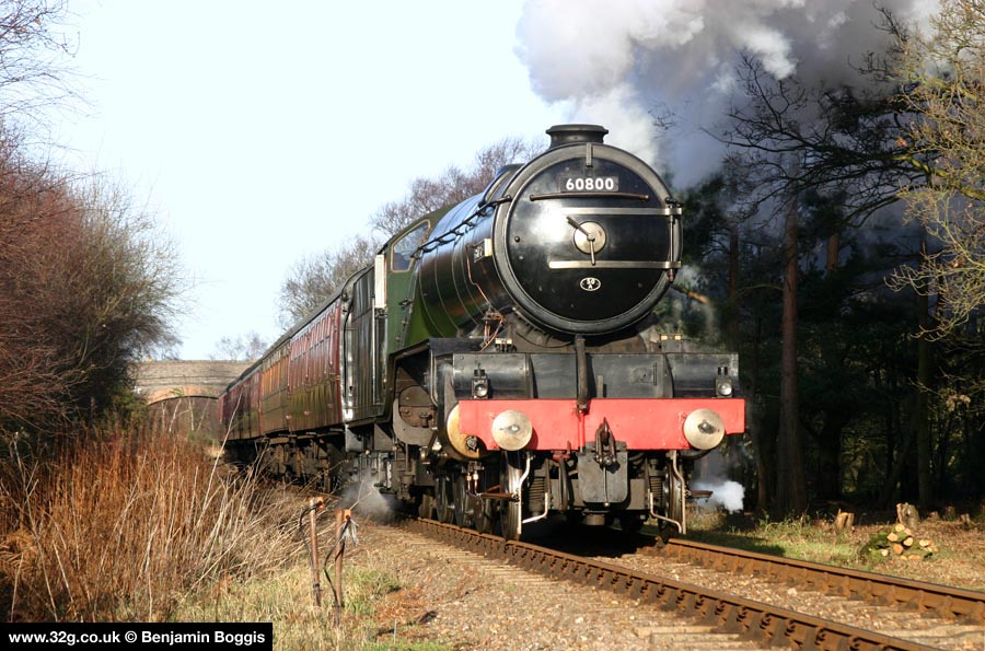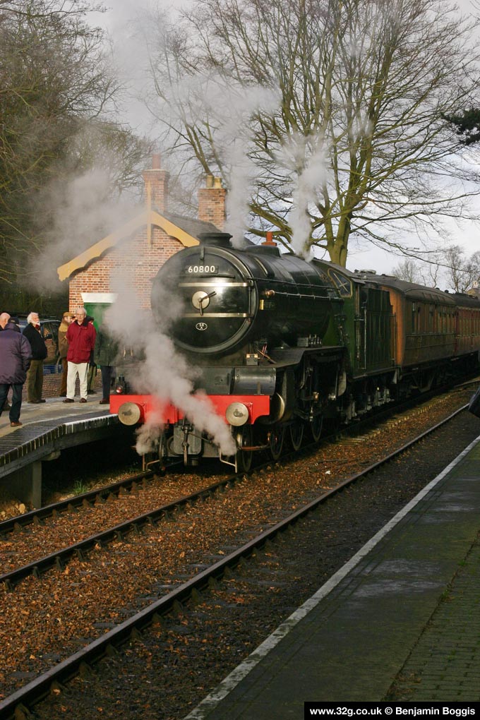 | 'Green Arrow has arrived, it will be used on driver familiarisation this weekend'. This wasn't common knowledge, but the news spread fast and a good number of people turned up for Green Arrow's first steaming. One thing is for sure,Christmas has deficiently arrived early on the NNR. I have been looking forward to the National Railway Museum's sole surviving V2, 60800 Green Arrow coming to the NNR, every since I first knew it would be spending its winter holidays down by the sea. Green Arrow is, without doubt, one of the most famous locos to have visit the NNR, and the fact that it is an LNER loco, made it all the more special for me. I arrived at midday, Green Arrow had been running light engine from Sheringham to Holt, slotting in between the Santa Specials. I finally caught up with Green Arrow at Weybourne, and was told it would be double heading later with WD 2-10-0 90775 on the 14.45 and 17.00 Santa Specials, not to be missed! It is fair to say at this point, that when 60800 and 90775 came round the curve and approached bridge 303, I have never seen such a spectacular display of steam, smoke and noise in my life! It was awe-inspiring! I think that any cobwebs that had been there scene 1936, have definitely been cleared out! | |||