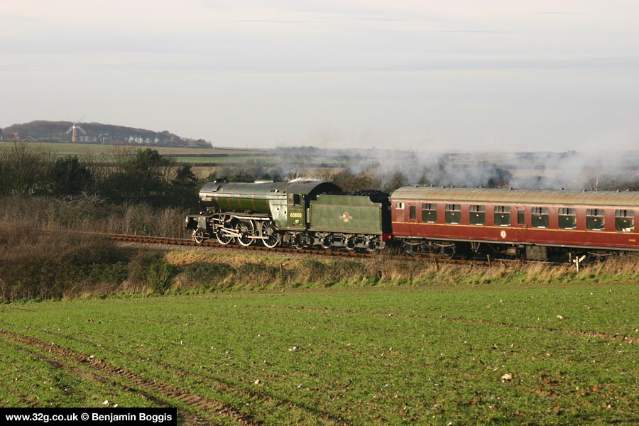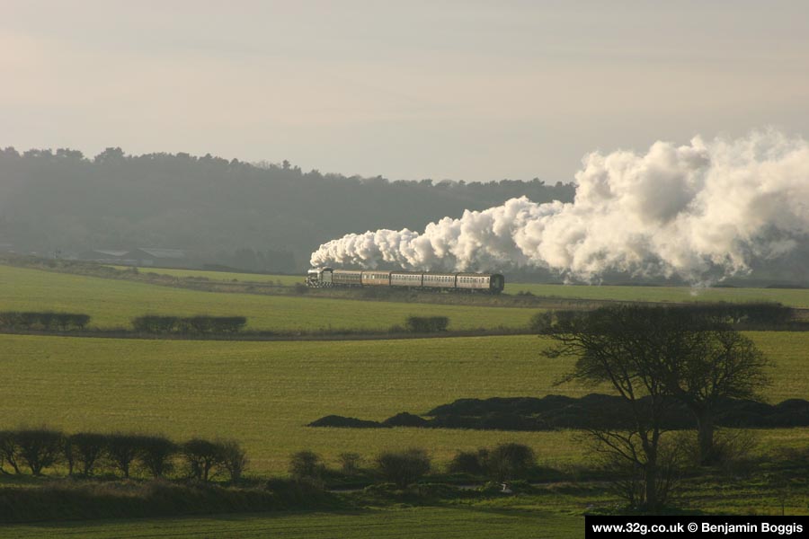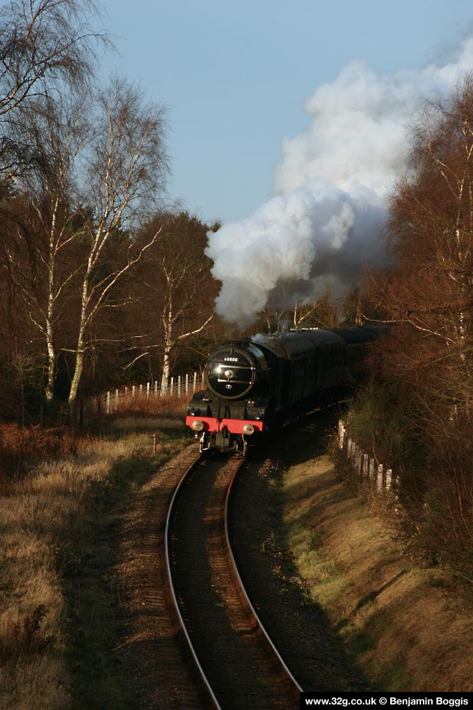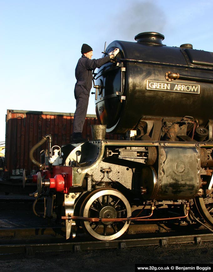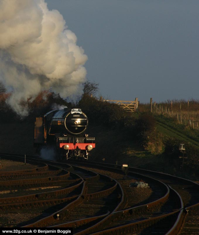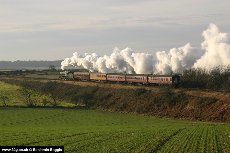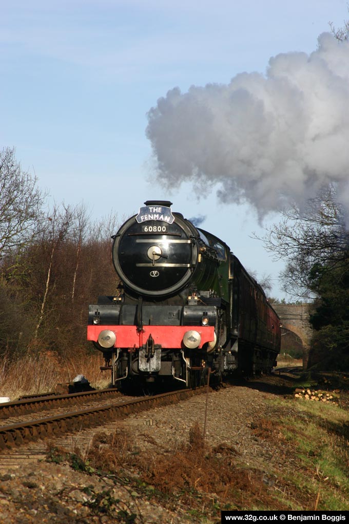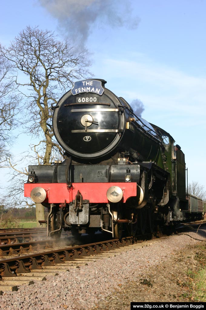 | 'Green Arrow has arrived, it will be used on driver familiarisation this weekend'. This wasn't common knowledge, but the news spread fast and a good number of people turned up for Green Arrow's first steaming. One thing is for sure,Christmas has deficiently arrived early on the NNR. I have been looking forward to the National Railway Museum's sole surviving V2, 60800 Green Arrow coming to the NNR, every since I first knew it would be spending its winter holidays down by the sea. Green Arrow is, without doubt, one of the most famous locos to have visit the NNR, and the fact that it is an LNER loco, made it all the more special for me. I arrived at midday, Green Arrow had been running light engine from Sheringham to Holt, slotting in between the Santa Specials. I finally caught up with Green Arrow at Weybourne, and was told it would be double heading later with WD 2-10-0 90775 on the 14.45 and 17.00 Santa Specials, not to be missed! It is fair to say at this point, that when 60800 and 90775 came round the curve and approached bridge 303, I have never seen such a spectacular display of steam, smoke and noise in my life! It was awe-inspiring! I think that any cobwebs that had been there scene 1936, have definitely been cleared out! | |||