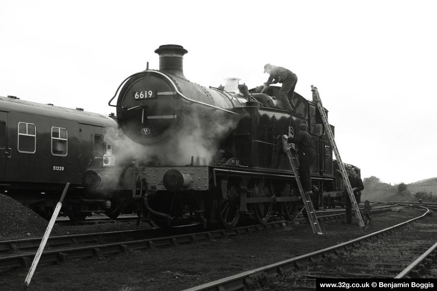 | 6619 visited the NNR for two weekends. It was exchanged with N7 69621 allowing the loco to star at the North Yorkshire Moors' LNER/ECML Gala. The GWR 56XX is seen below during its first weekend in service along with Class 31 31162. | |||
