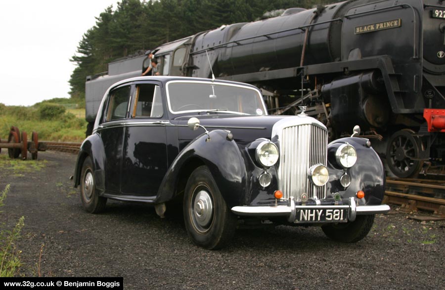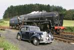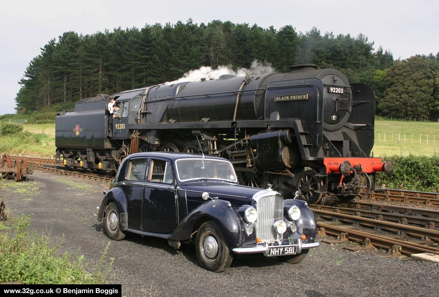 loco on a few (specially organised) trips on Bank Holiday Monday. Also worth a mention is a certain Bentley, once owned by Ivo Peters. It seen below with 92203 (once a former S&D loco), and is the first time they have been seen together in 45 years. |