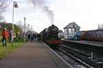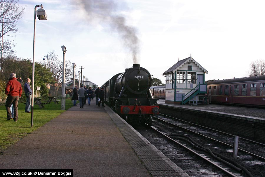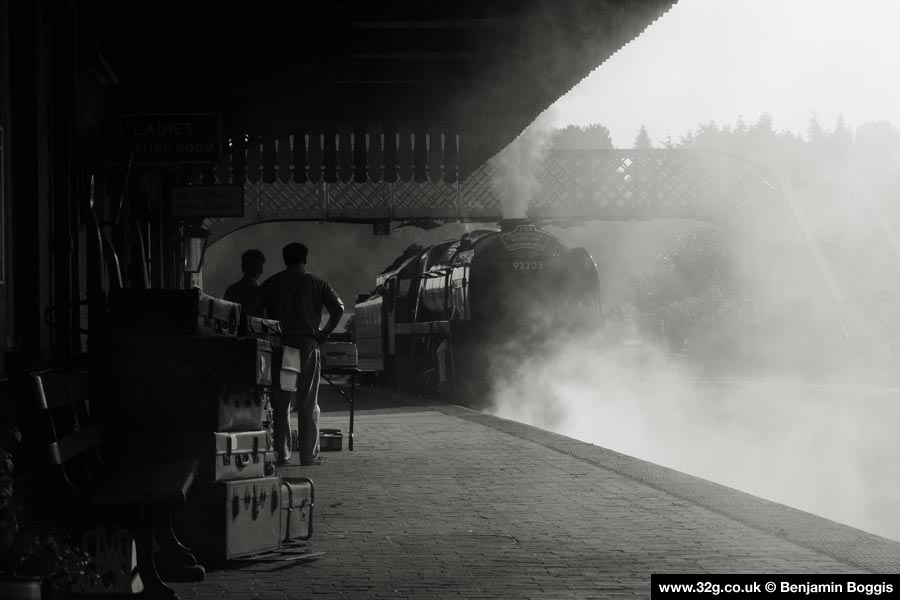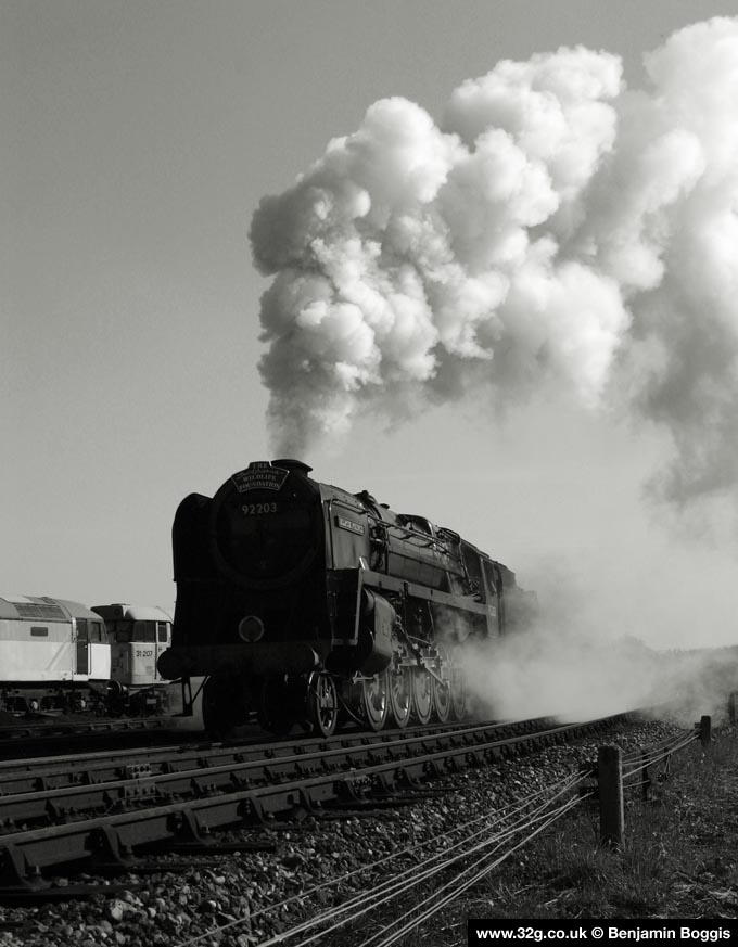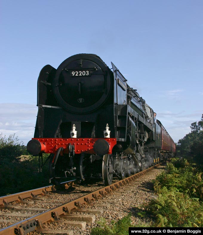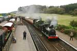 | Back to its usual September slot, this years event featured six steam locos and an intensive timetable. Due to many other commitments this year, I was only able to take photos on Friday morning. Locos in service; BR 9F 92203 Black Prince; WD 2-10-0 90775; LNER J15 65462, N7 69621; SR Battle of Britain class 34081 92 Squadron (masquerading as 34057 Biggin Hill); and finally GWR 56XX 5643. | |||