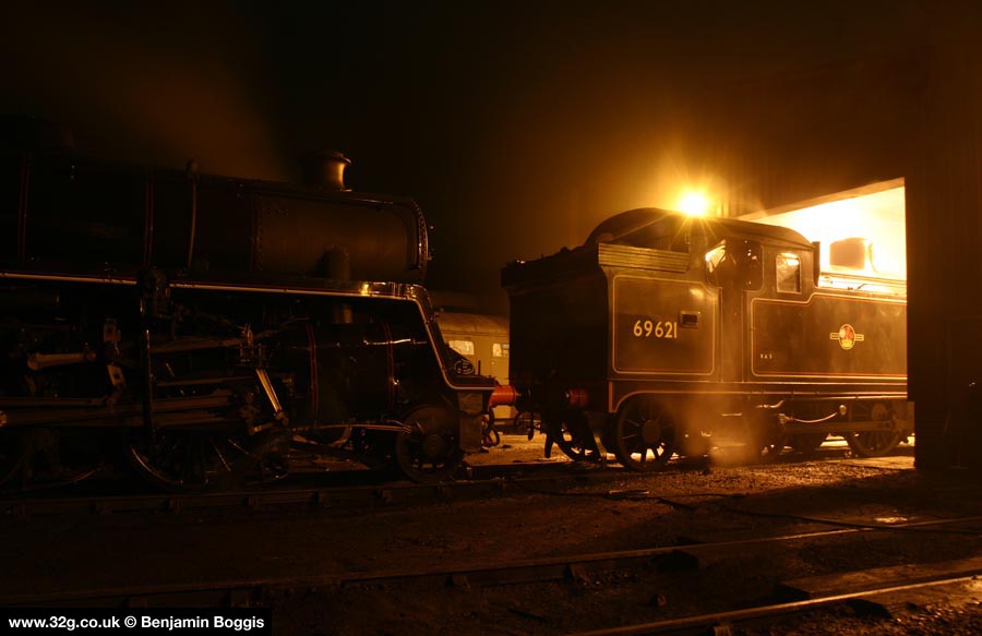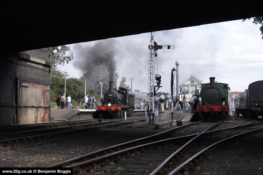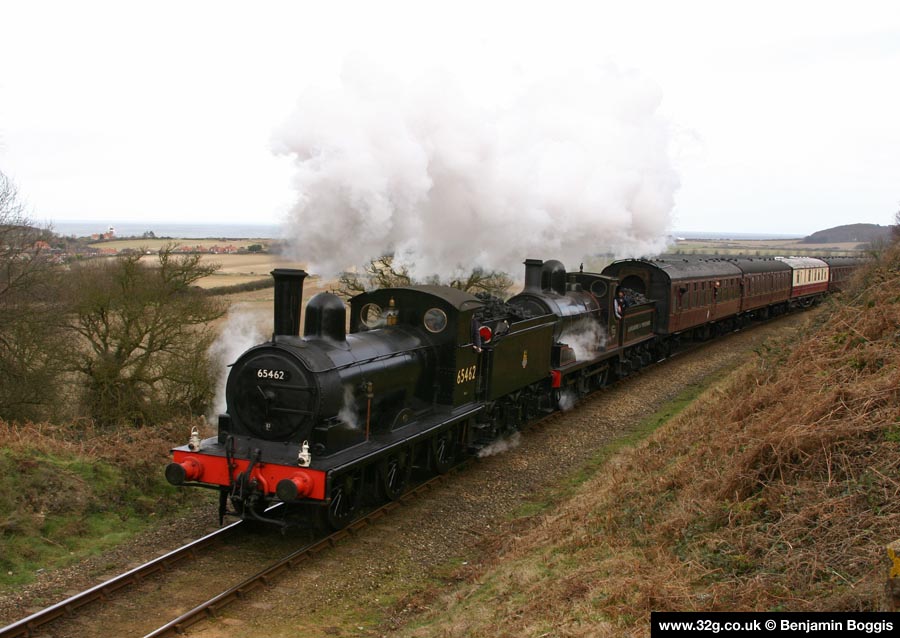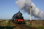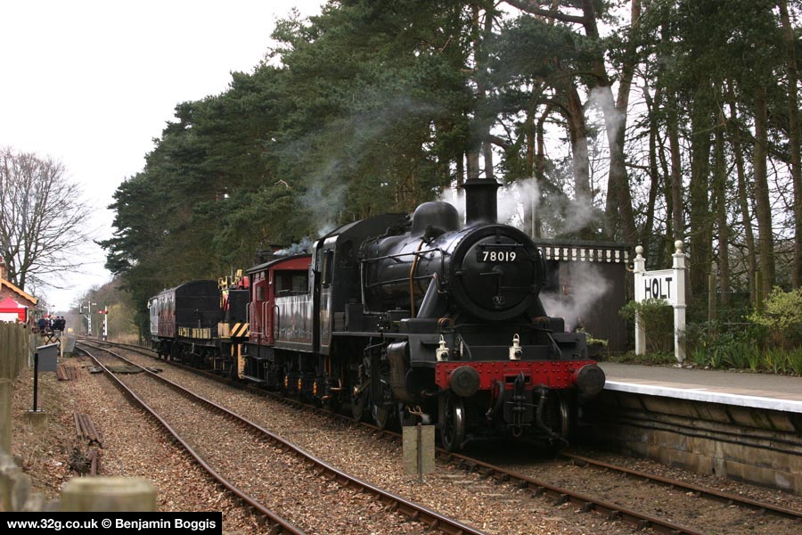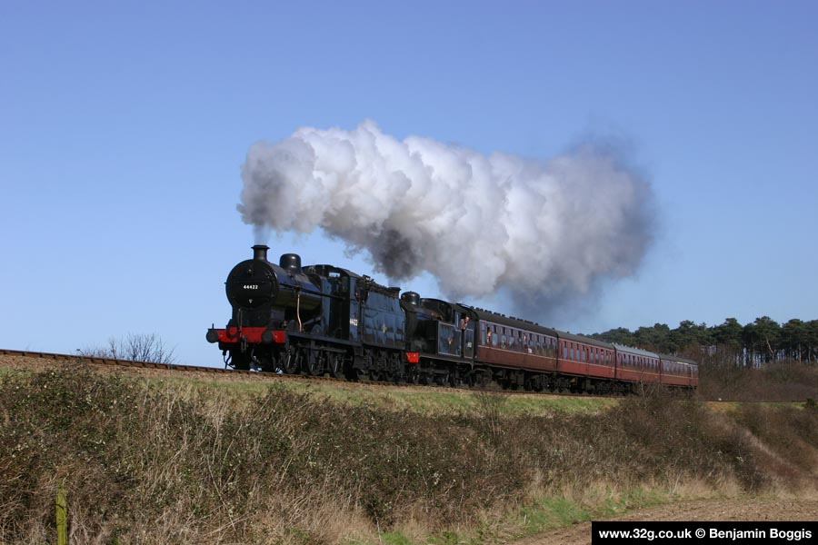 | Commemorating 50 years since the closure of the former Midland and Great Northern Joint Railway on the 28th February 1959, the North Norfolk Railway's 'That's Yer Lot' steam gala was the biggest and most successful gala held by the railway. The five day event (held over two weekends) featured eight steam locomotives representing types that were associated with the M&GN or East Anglia. An intensive timetable was worked throughout the gala, highlights of which including the pairing of visiting B1 Mayflower and the line's Gresley Quad-Arts, and the long awaited return of a goods train to the gala programme in the form of a demolition train (quite appropriate for the event). Visiting locos were: L&Y A Class 1300; LNER B1 1306 Mayflower; LMS 4F 44422; BR 4MT 76079, 2MT 78019. These were joined by the home fleet: LNER J15 65462, N7 69621 and WD Austerity 2-10-0 90775. (Photos featured here are taken over a nine day period from Friday 27th February to Sunday 8th March.) | |||
