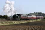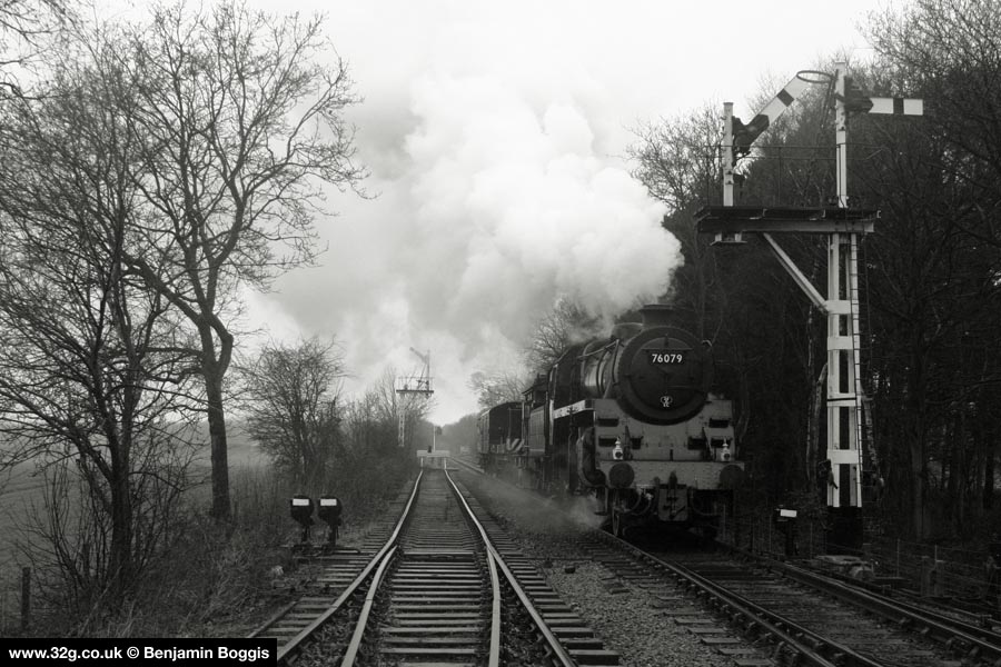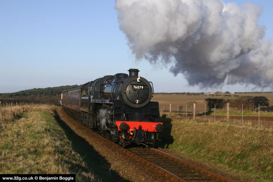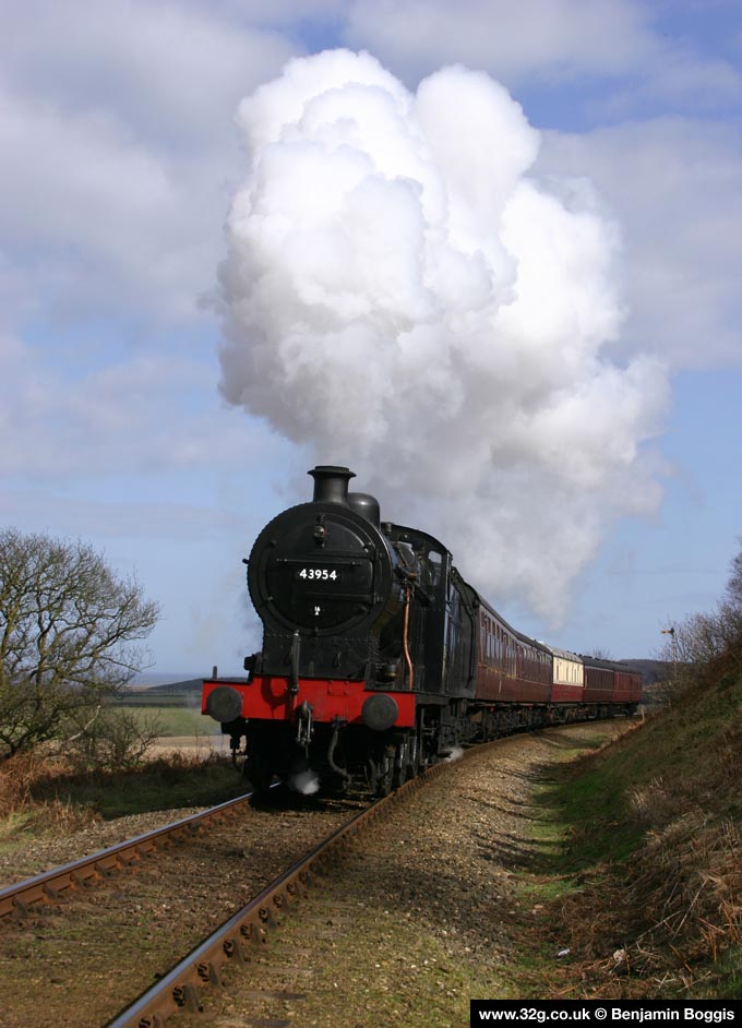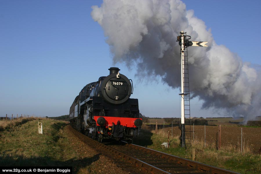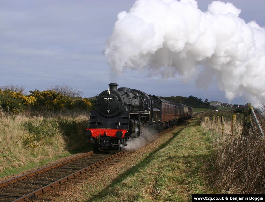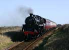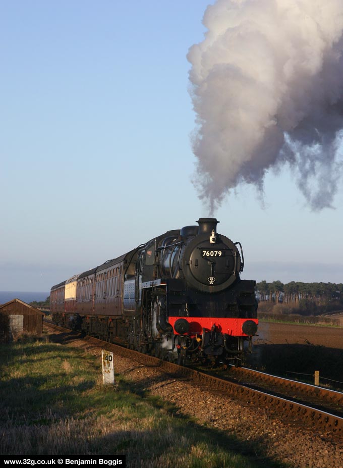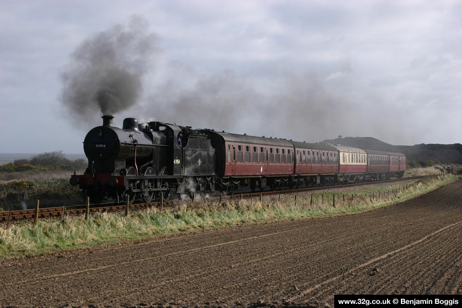 | Ian Bowskill Photo Charters. Monday 9th March featured visiting 4F 44422 renumbered as Leicester's 43954 and paired with the NNR's Gresley Buffet car, giving a flavour of the Summer Saturday trains seen over the Joint. Tuesday 10th March saw 4MT 76079, firstly with the breakdown train and later with coaching stock. While not regulars, Standard 4s did occasionally make it onto the M&GN. | |||