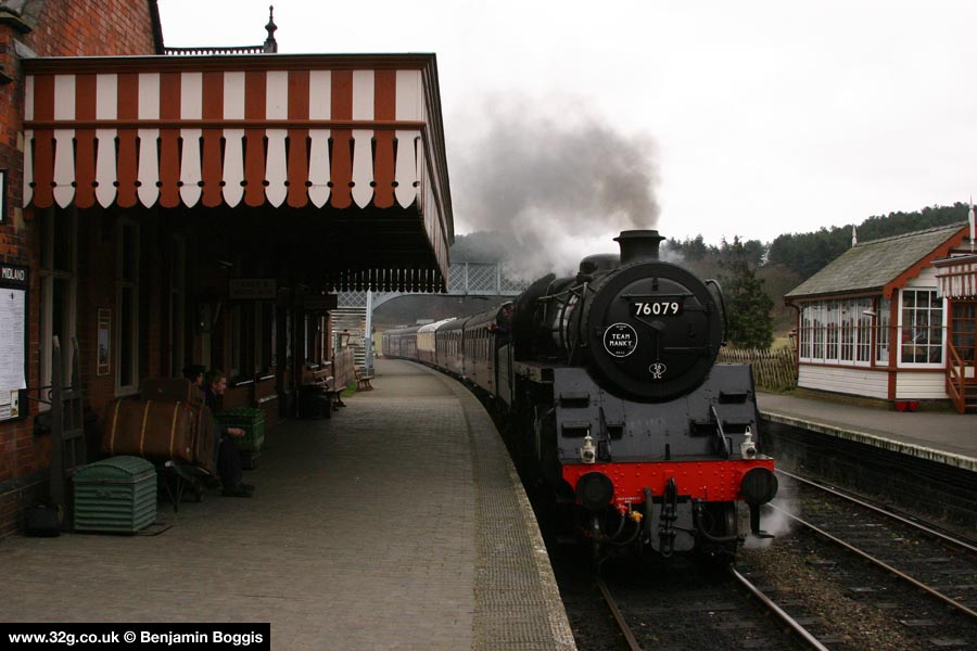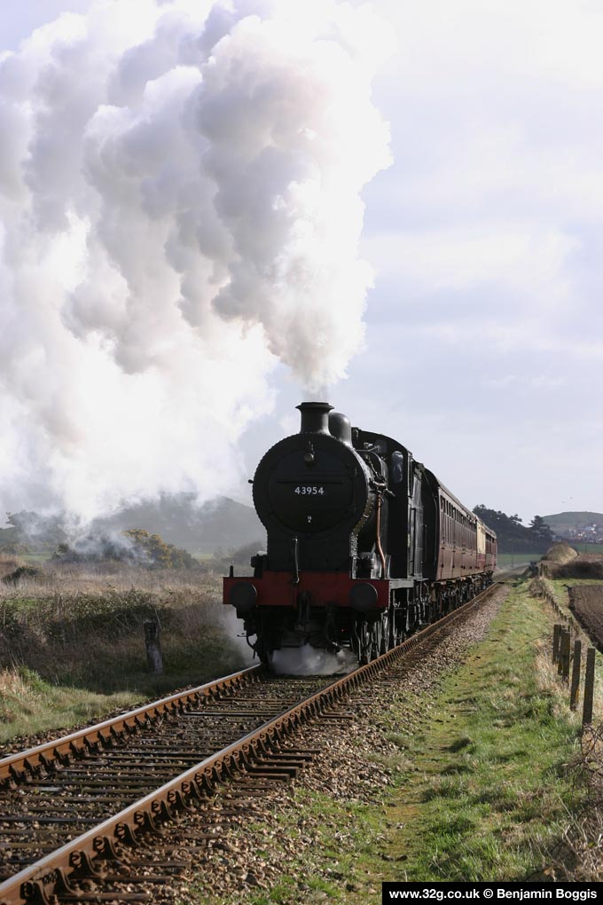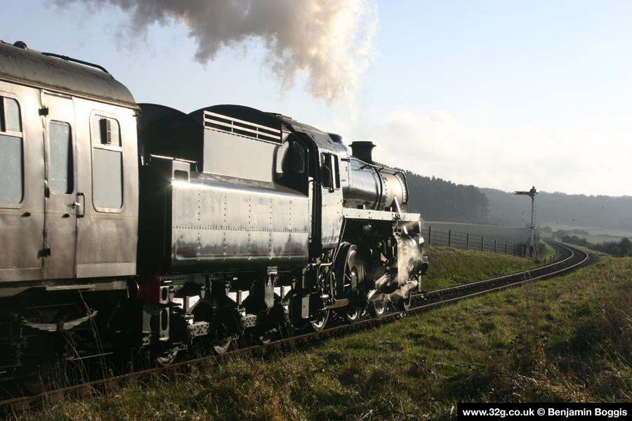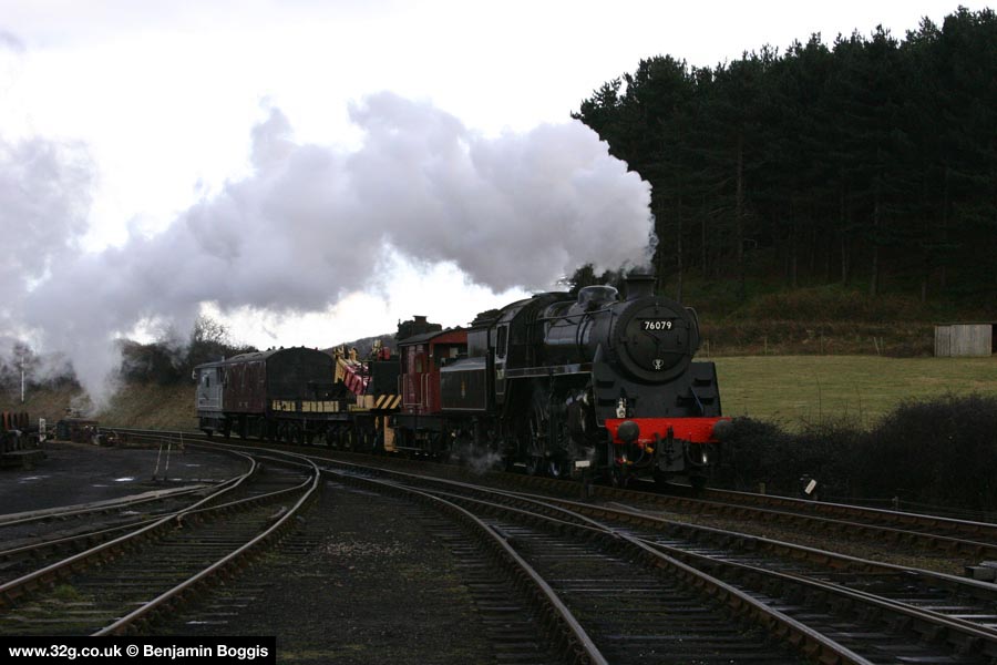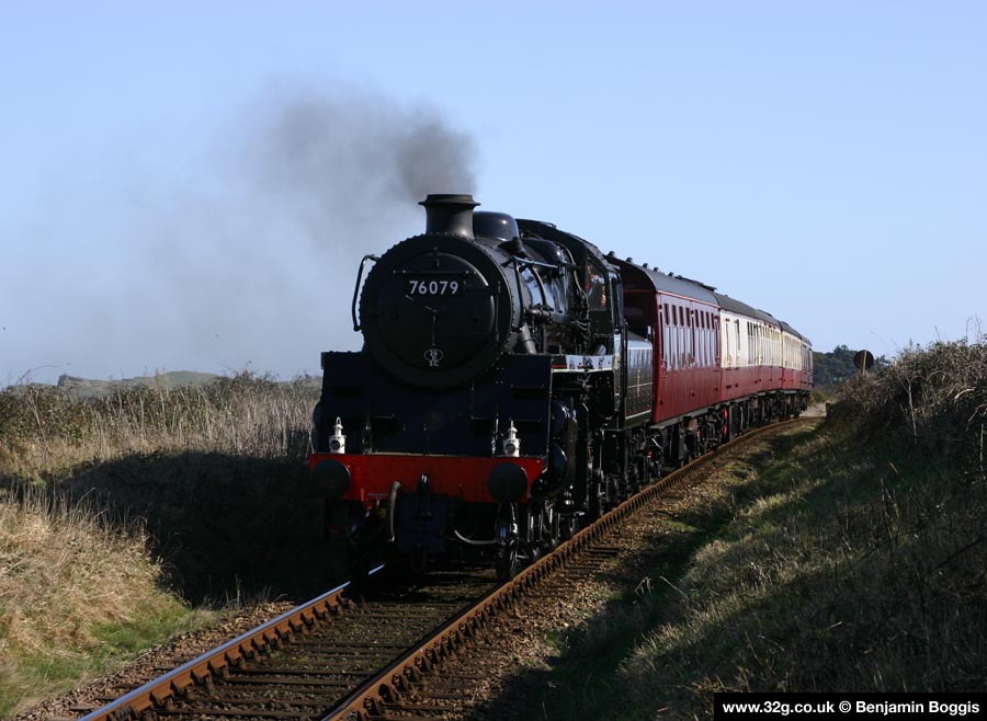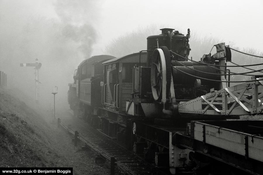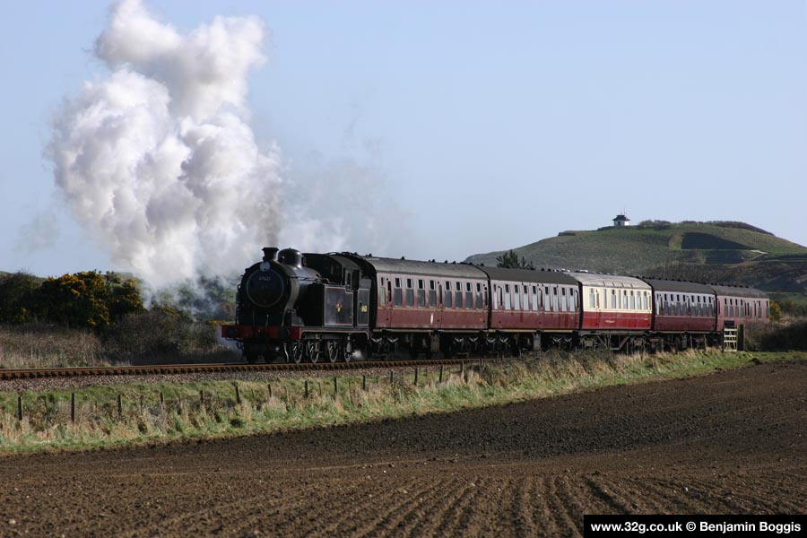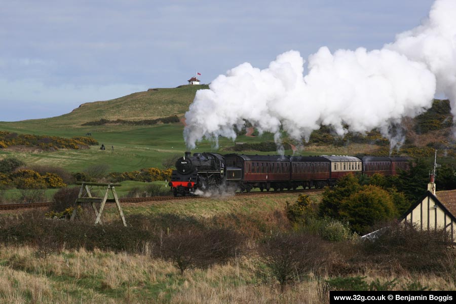 | Ian Bowskill Photo Charters. Monday 9th March featured visiting 4F 44422 renumbered as Leicester's 43954 and paired with the NNR's Gresley Buffet car, giving a flavour of the Summer Saturday trains seen over the Joint. Tuesday 10th March saw 4MT 76079, firstly with the breakdown train and later with coaching stock. While not regulars, Standard 4s did occasionally make it onto the M&GN. | |||