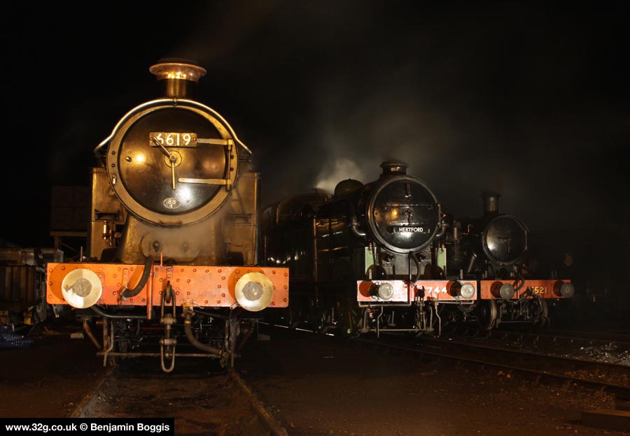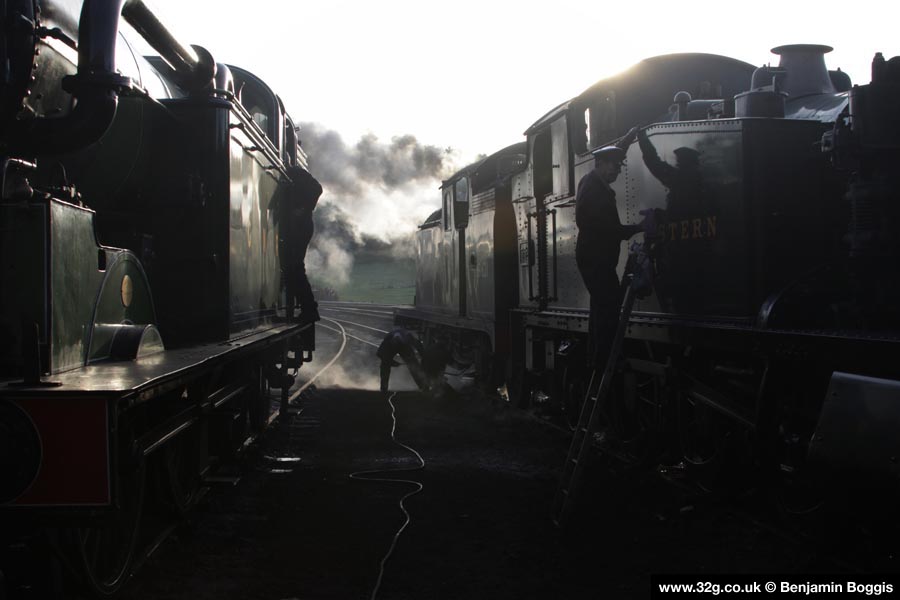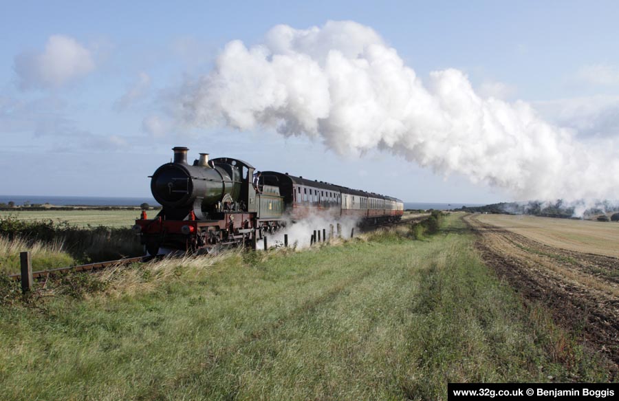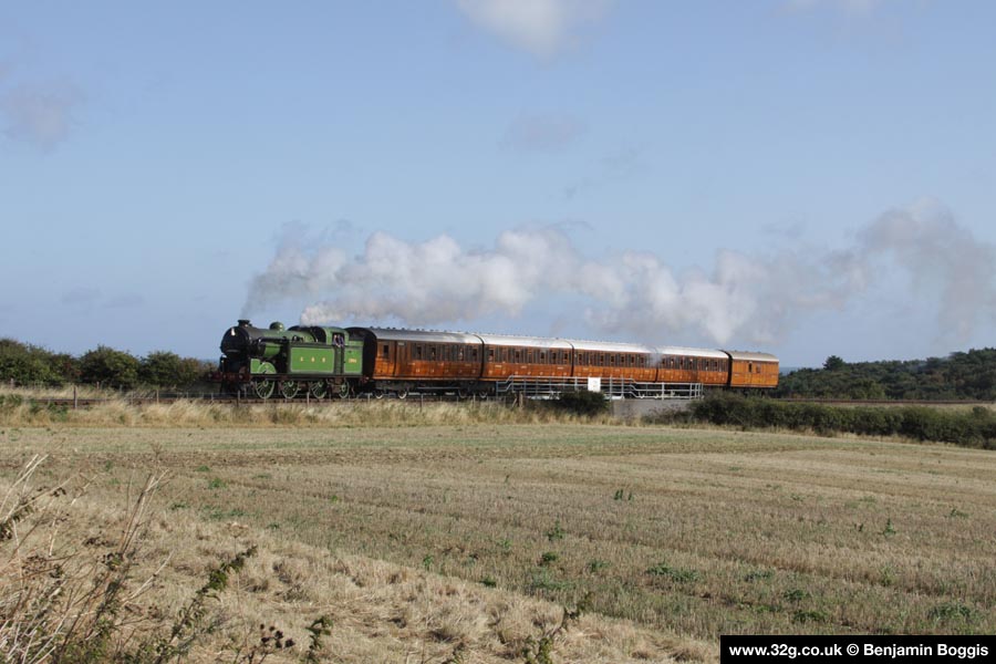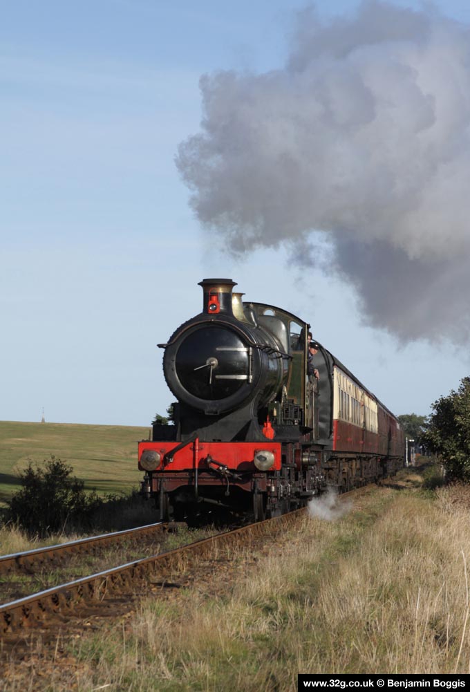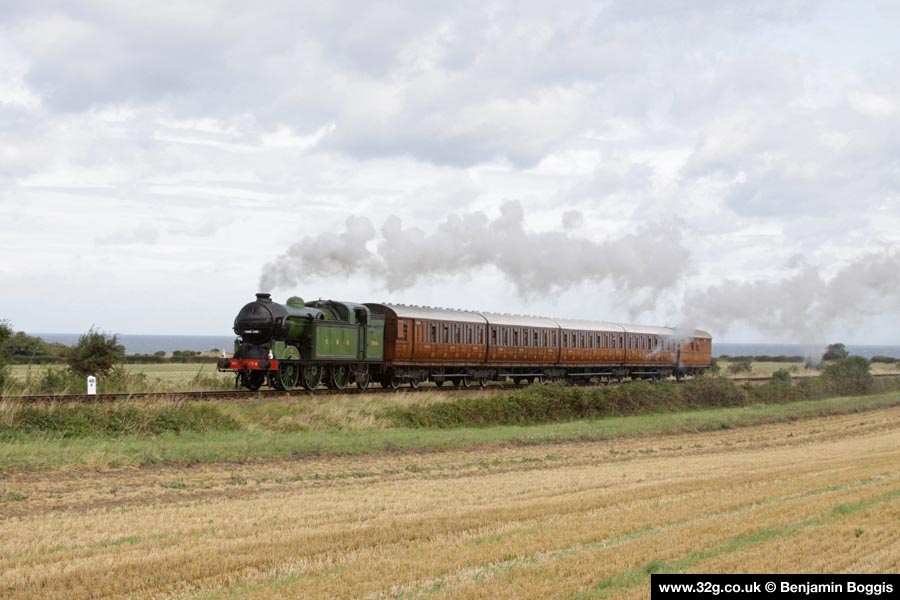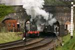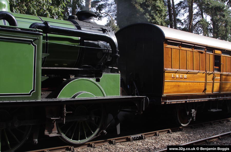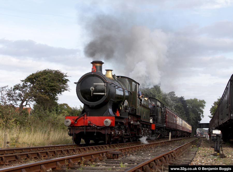 | Most steam gala's are about locos, usually lots of them. There may be a special guest loco (or two), but few galas are about a complete train. For this year's annual Steam Gala the NNR got its sums right: N2 + Quads = Perfection. There is no other word for it. That said, you could almost be forgiven for forgetting the supporting cast which included a return visit for celebrity 4-4-0 3440 City of Truro. This was joined by fellow GWR stalemates 6619 from the North Yorkshire Moors Railway and 'Polish Prairie' 5521 from Flower Mill. The home fleet consisted of J15 65462, N7 69621 and making its first gala appearance for several years 1982 Ring Haw. (Oh!, and there was a diesel too, Class 24 24081.) I must add at this point it was a welcome comeback for the goods train. Long may it feature in the gala timetable. | |||