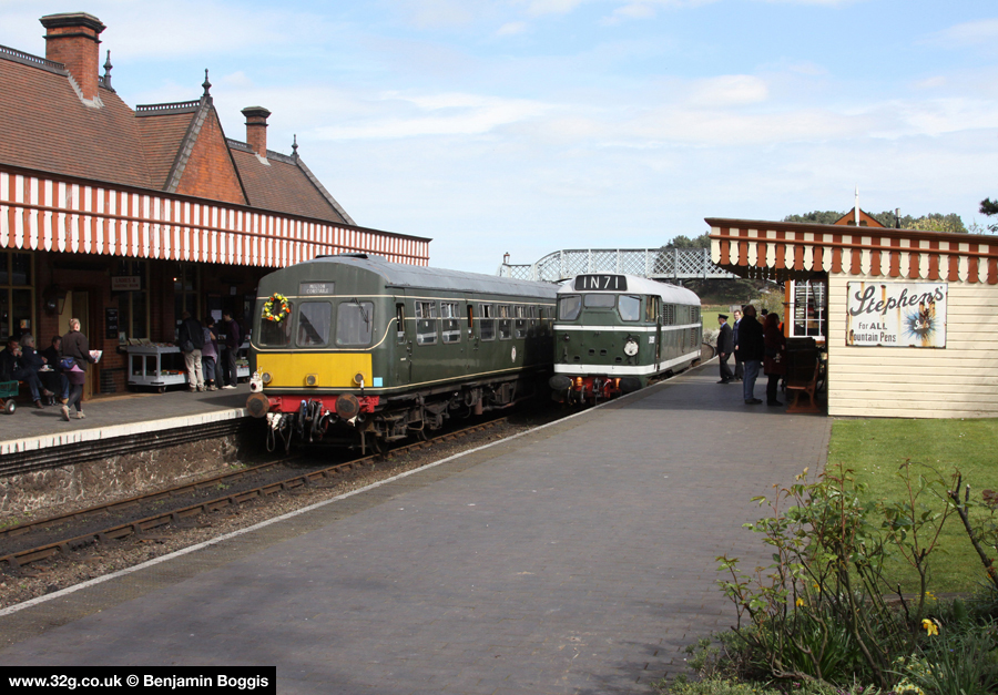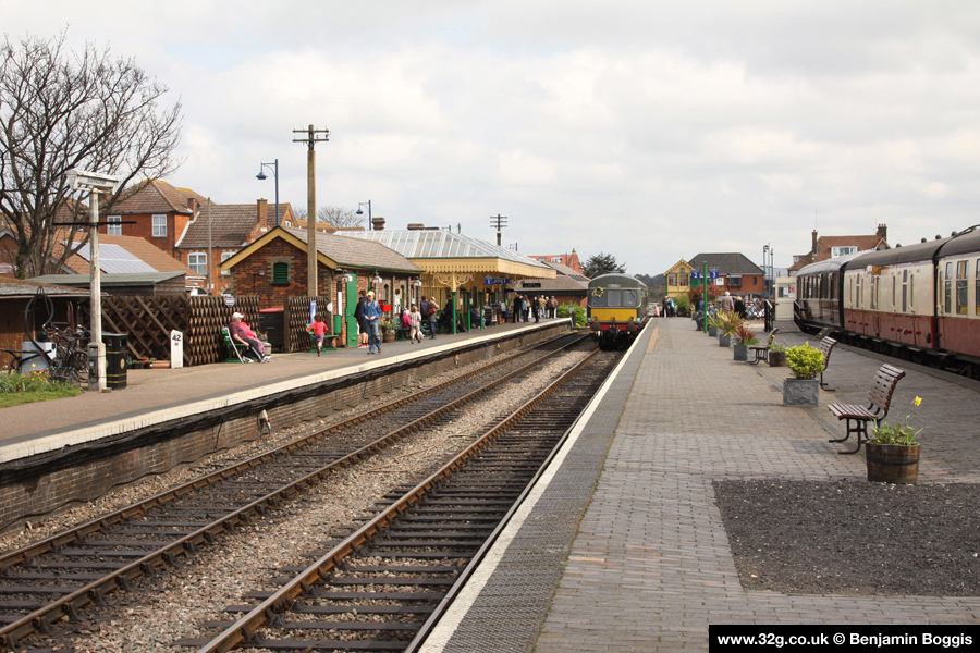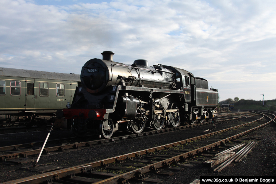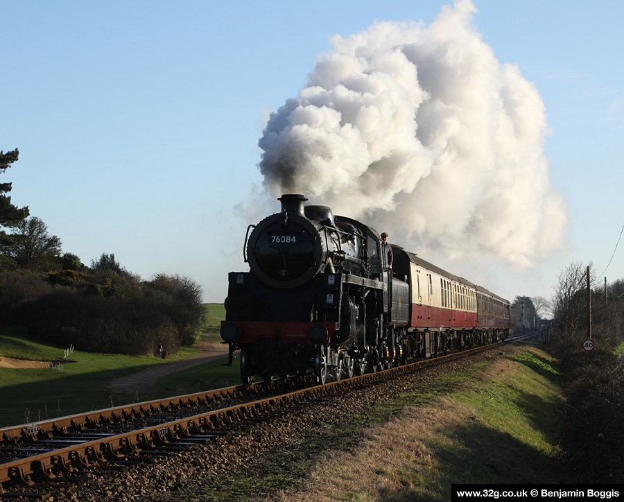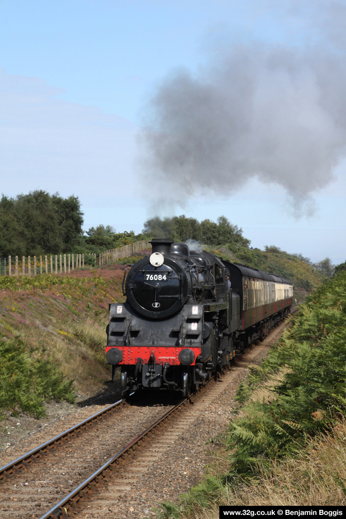 | On the 6th April 1964, the infamous 'Beeching Axle' fell on the M&GN's branch line from it's former engineering base at Melton Constable to Sheringham. That was suppose to be that, but part of the line was selected for preservation and today forms part of the North Norfolk Railway. To commemorate 50 years since the line's closure the NNR held a '60s Weekend' based around the 1964 timetable, featuring typical motive power from the final years of the line, including a ubiquitous Metro-Cammell DMU, a Brush Type 2 diesel and Standard 4MT 76084 (renumbered as 76034, one of the only members of the class to be recorded working over the line in BR days). | |||