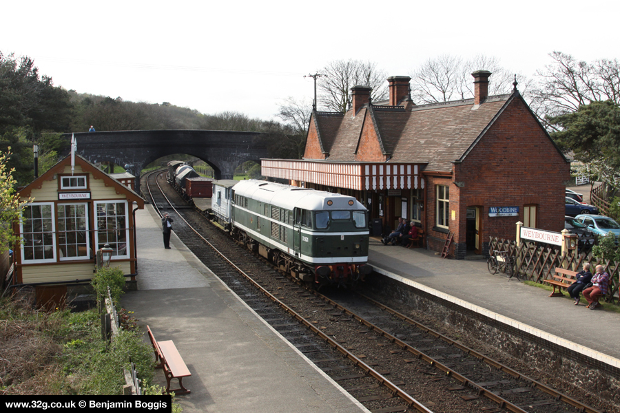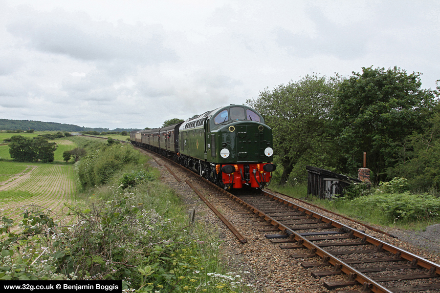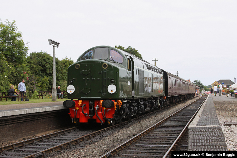 | This year's Summer Diesel Gala took on a mainly green theme as the event's organiser, the Weybourne Traction Group, looked to commemorate the closure of the line in 1964. Star guest (and the main reason for my visit) was Class 40 D306 Atlantic Conveyor, evoking scenes from when the first members of the class took over the top link turns from the 'Britannia's' on the Great Eastern main line in the late 1950s. Also visiting were Class 20 D8059 (from the Severn Valley Railway) and Class 14 D9531 (from the East Lancs Railway). In action from the home fleet were: Class 08 D3940; Class 31 D5631; Class 37 D6732. | |||